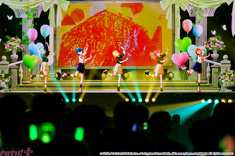 そして、ミクが戻り一歌、みのり、こはね、司、奏とともに披露するラストナンバーは5周年アニバーサリーソングの『ペンタトニック』。最後だけあってダンスやファンサービスも全力、さらに左右のスクリーンからは他のメンバーたちも登場して超豪華な内容に! 会場全体で「1 2 3 4 5」のリリックを歌い、大歓声の中で5周年ライブを締めくくりました。