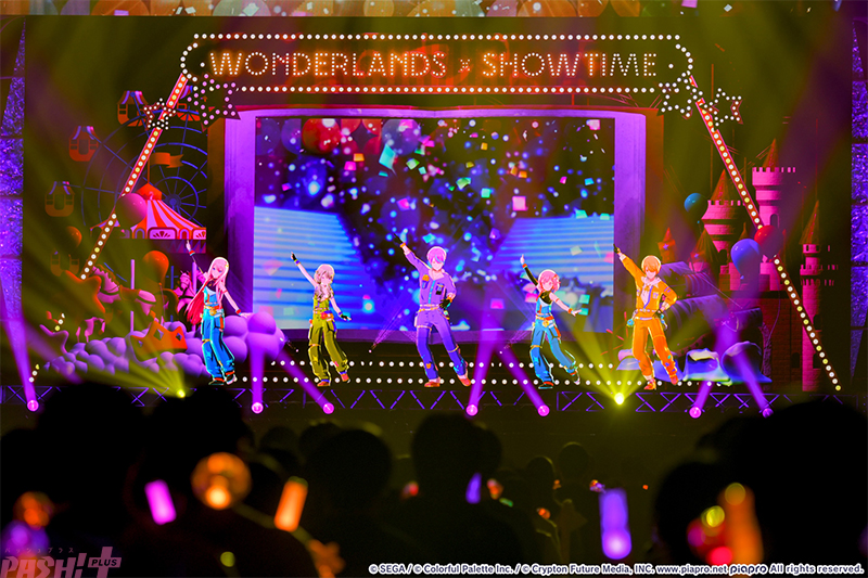 一度ステージ上に幕が下りるショーのような演出から、抜き足差し足忍び足で登場したのはワンダーランズ×ショウタイム(通称:ワンダショ/天馬司、鳳えむ、草薙寧々、神代類)とKAITOによる「わんだほい怪盗団」。