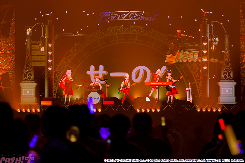 5回目の開催となる「セカライ」は、今回も多くのファンが会場に足を運び、ナレーションによるリズムに乗せたクラップの練習など、開演前から会場のテンションは爆発寸前。いよいよ開演となり、アニメーションによる演出が始まると、参加キャラクターたちに向けて大きな声が送られます。