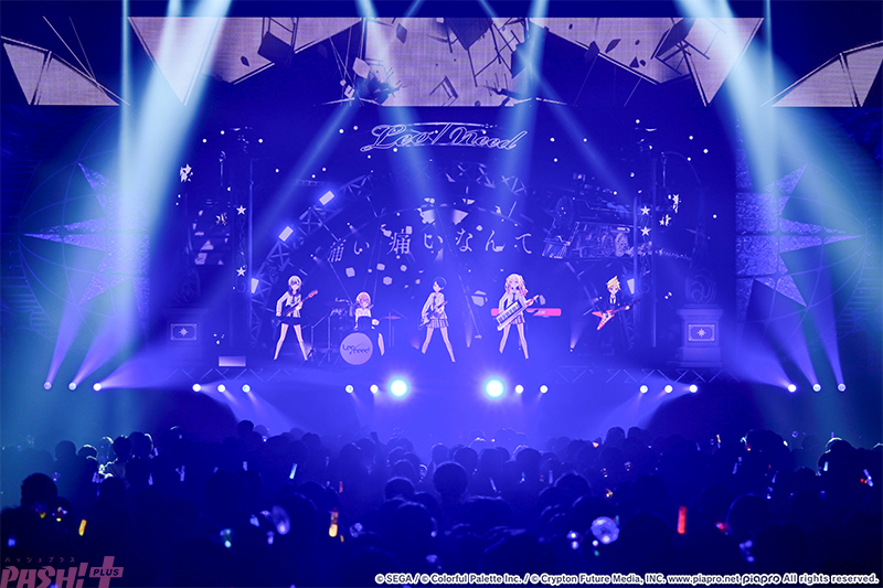 雅な印象を感じる和のメロディーの中、バーチャル・シンガーたちが会場に手を振ると、観客も手を振り返します。しっとりとした楽曲ながらバンドサウンドによって迫力&聴きごたえ抜群な一曲となっており、リアルライブの醍醐味を感じさせる一幕となりました。