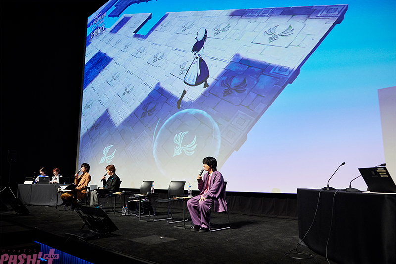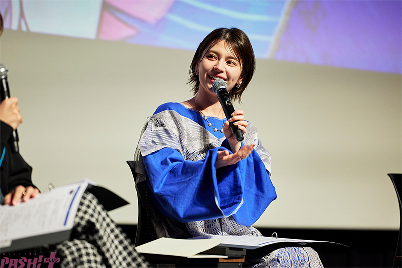 次のコーナーはゲストにアフレコ秘話などを聞いていく「ナドクライキャストインタビュー」。2022年のPVから3年を経て本格登場となったコロンビーナ役のLynnさんは、彼女を落ち着いててのんびりしているが、茶目っ気も好奇心もある純粋無垢な子どものイメージで演じられたとのこと。「いろいろ吸収していって、自分というものを探しているみたいなところだと思ったので、そこは常に頭に置いていましたね」と話すと、会場からも納得するような声が上がります。