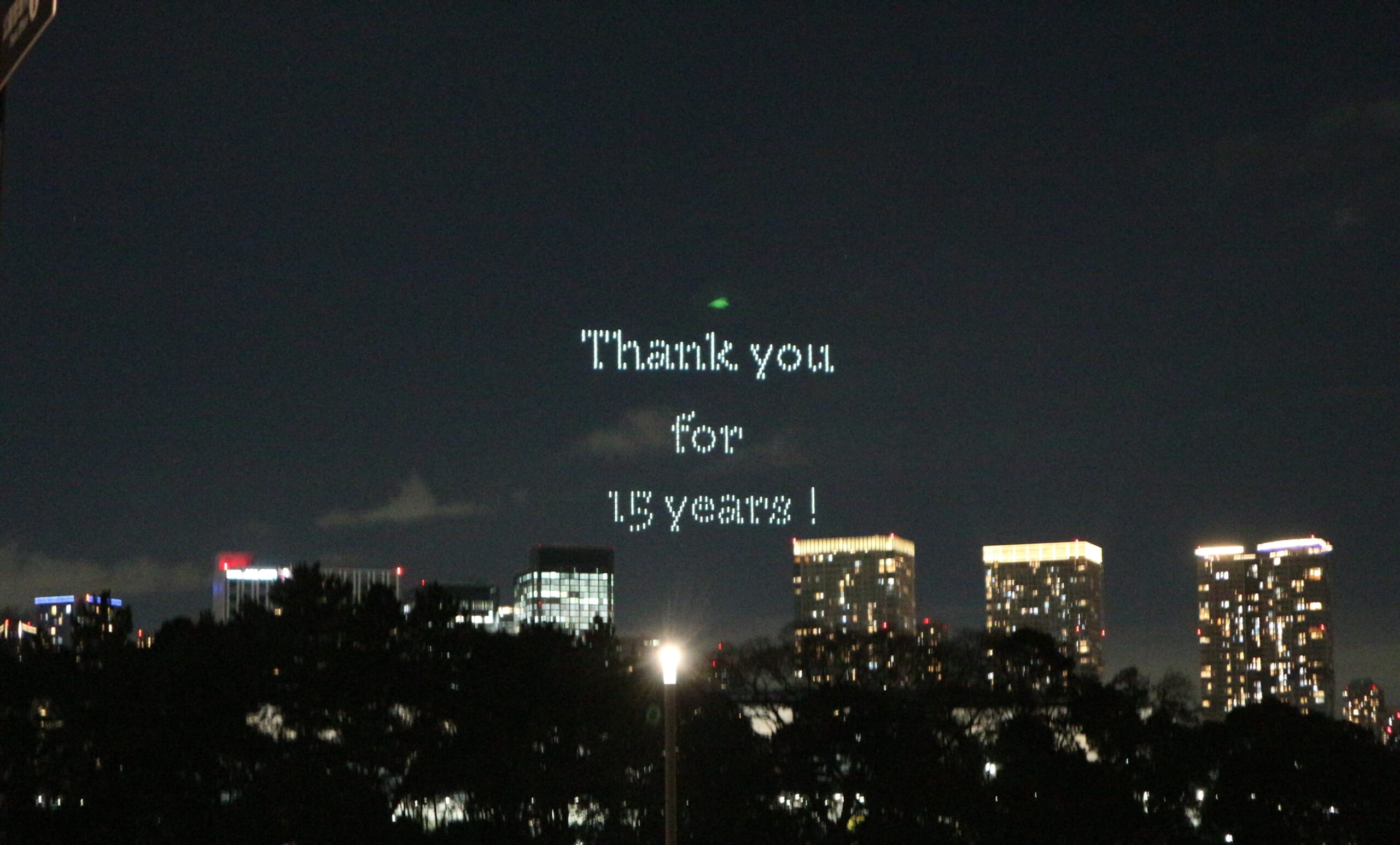 最後は、「Thank you For 15 years!」「Forever and ever, MUSIC, DREAMS, and LOVE to everyone!」という、15周年を迎えた『うた☆プリ』からファンに向けたメッセージが浮かび上がり、約15分のドローンショーはフィニッシュ。