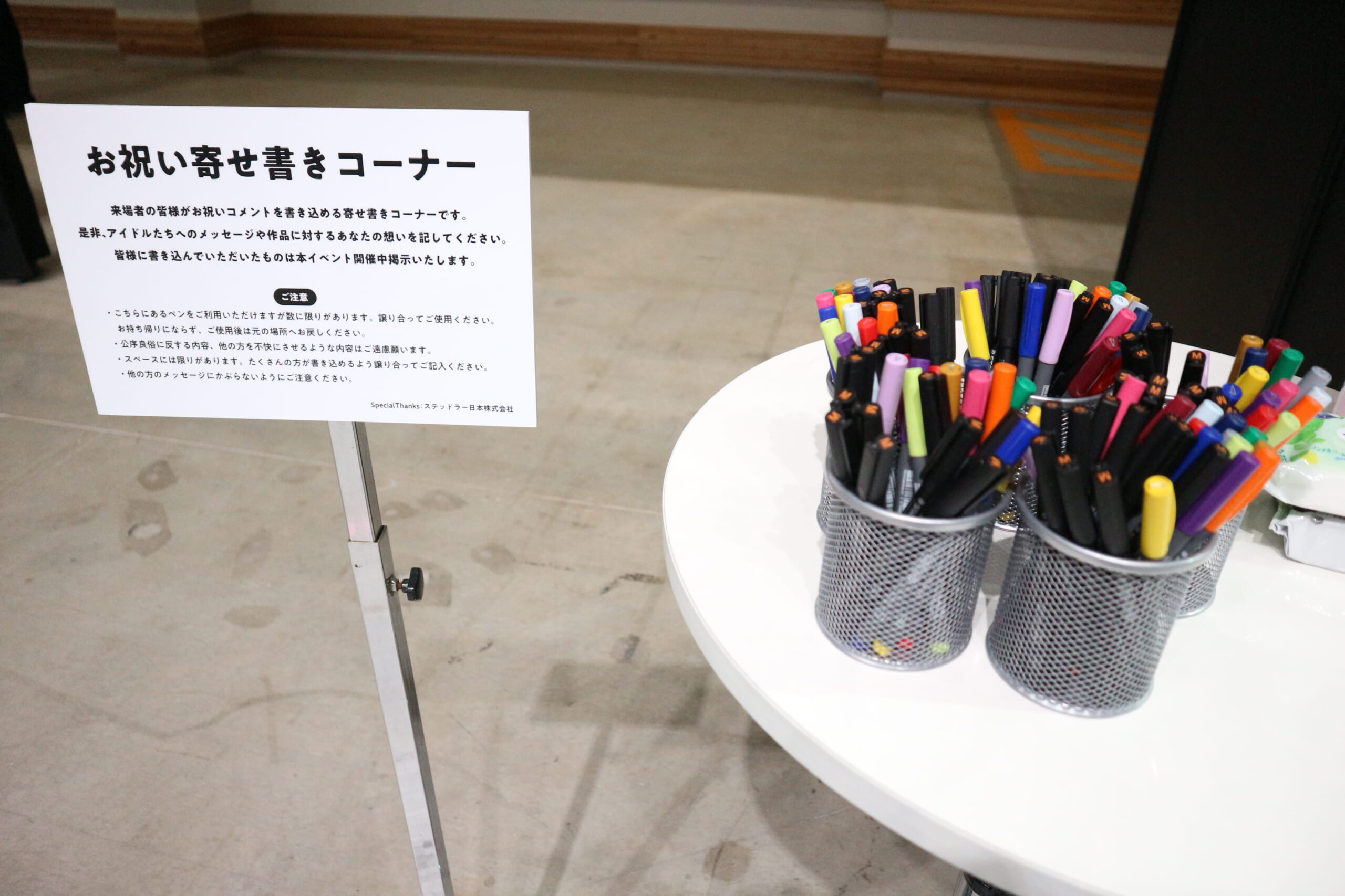 会場内に設けられた「お祝い寄せ書きコーナー」には連日、会場に集まったファンによって熱い思いが描き込まれていたが、それらはすべて18人のアイドルがそれだけ多くの人の心を揺さぶってきたことの表れだ。