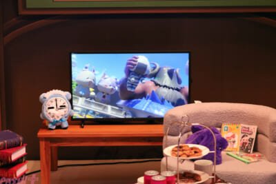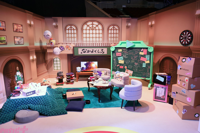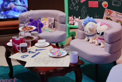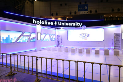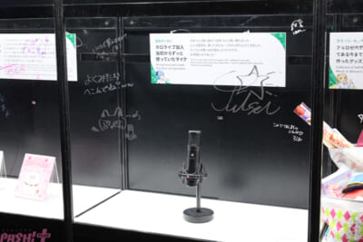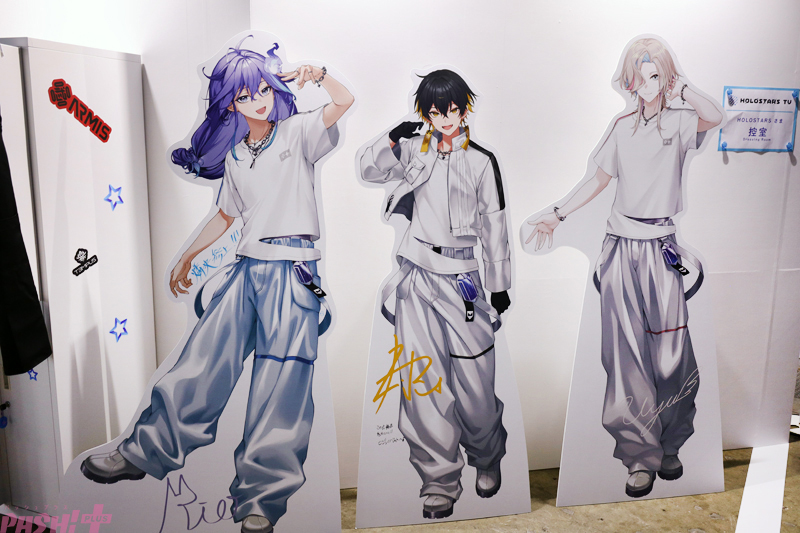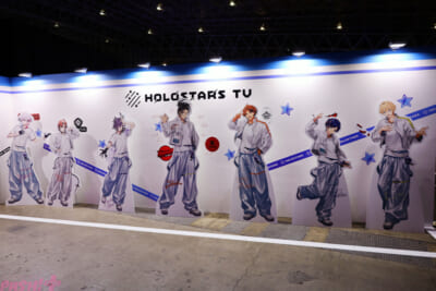 そして、私物展示などが行われている「HOLOSTARS TV」も要チェック。TV局をイメージしたブースは、本当にメンバーたちがそこにいたかのような質感を持った内容に。ぬい撮りスポットも用意されているので、推し活勢ならば必ず足を運んでおきたいところ!