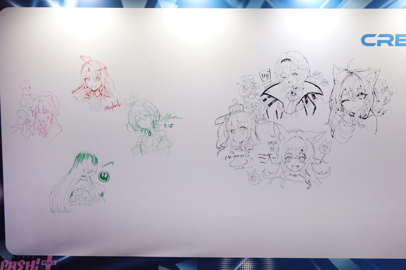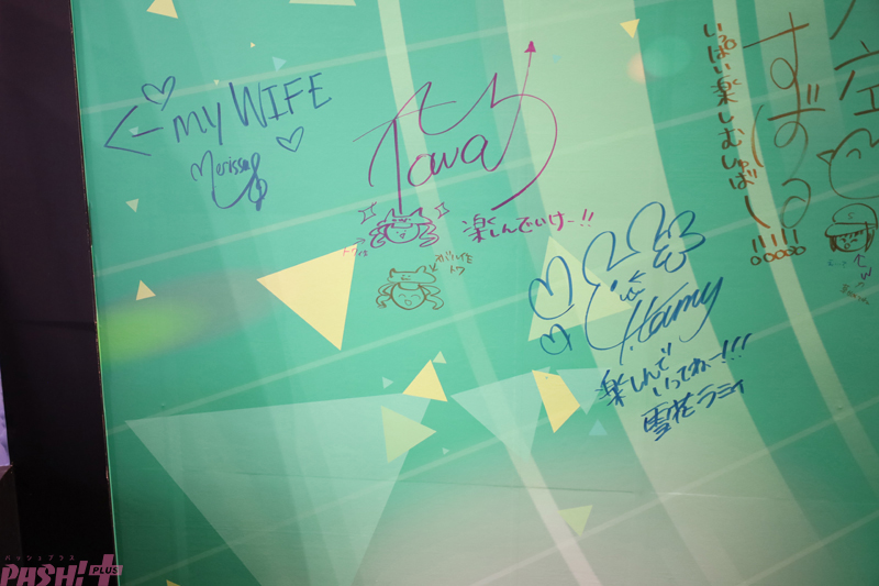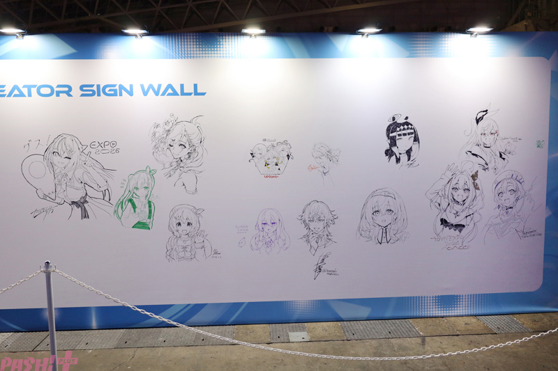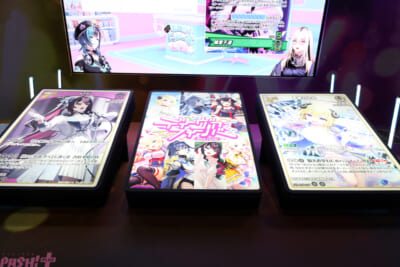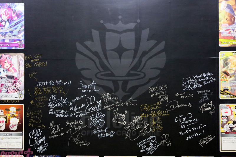 「hololive OFFICIAL CARD GAME」は各所に展示されたカードやホロメンたちのサインにも必見。本コンテンツに興味がある人は、あそびかた教室に参加してみては?