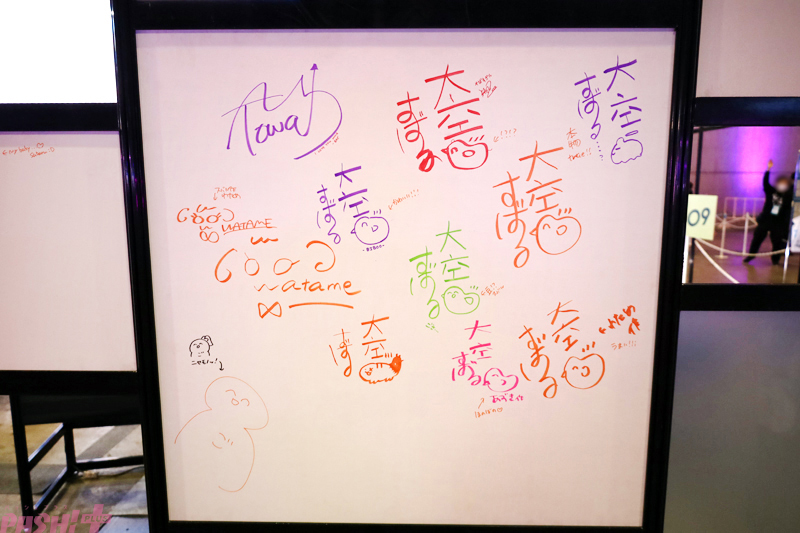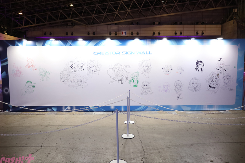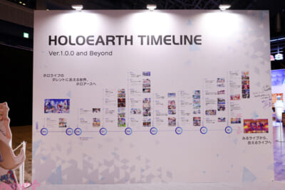 会場は、ホロライブプロダクションのタレントが過去と現在の姿で来場者をお出迎えするモニュメントを中心に、3つのエリアで構成。その他にも協賛ブースやホロライブプロダクションタレントやクリエイターのサインウォール、そして会場の各所に書かれたホロメン(hololiveに所属するタレントたちの総称で「ホロライブのメンバー」の略)のメッセージなど、隅々まで見どころが満載となっていました!