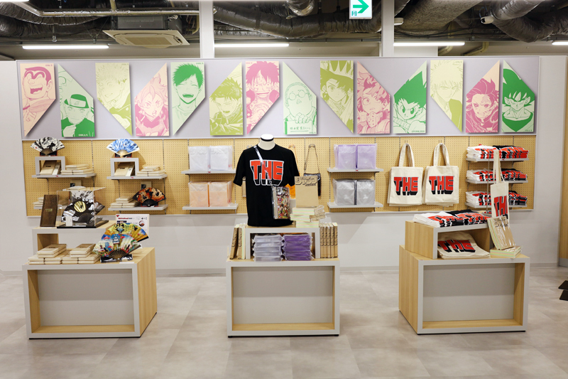 「THE ジャンプショップ」のロゴや、作品の名シーン、カラーイラストをベースにした商品のラインナップは400点以上!