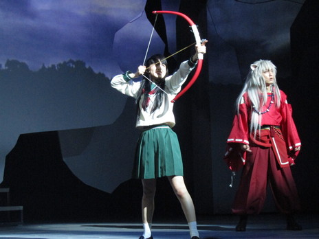 今日まで練習に練習を重ねてきた皆さんの舞台『犬夜叉』が初披露となりました。シナリオは原作をダイジェスト的にうまくまとめており、原作『犬夜叉』で必見のシーンが満載。一緒に旅をすることになる楓がツッコミを入れるシーンは笑いを誘うことが多々。犬夜叉とかごめの旅のいいアクセントになっていました!