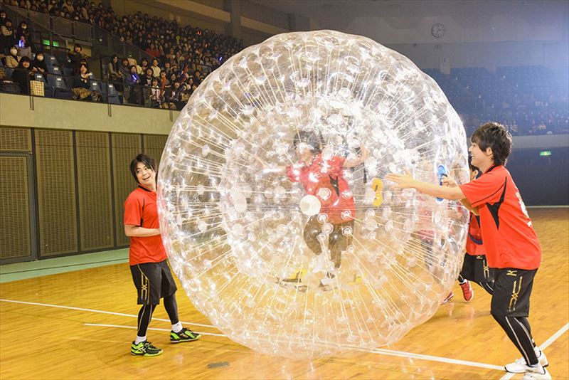 ハーフタイムには、番組にも出演した早稲田大学男子チアリーディング部・ショッカーズが登場し、ハイレベルなパフォーマンスを披露。さらに「マッスル声援対決」では、チーム福山、チーム野島への声援量を測定し、多いほうにポイントが加算されるということで、各チームへ向けて大きな声援が送られた。