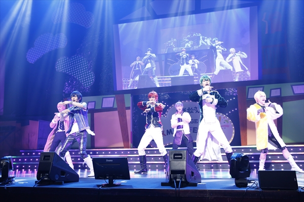 イベントはF6による『WAKE UP! SIX MEN’S SHOW TIME!!!!!!』から幕開け。”アレしよう”と囁きかけながら、セクシーな歌声&ダンスを披露するF6の姿に、会場のボルテージは急上昇。大きな歓声が飛び交った。そして、ステージ上に設置された襖が開くと、6つ子たちが登場! 続いてF6、イヤミ、トト子、チビ太、ハタ坊らが登場し、全員がお馴染みの”シェー”のポーズを決めてみせた。