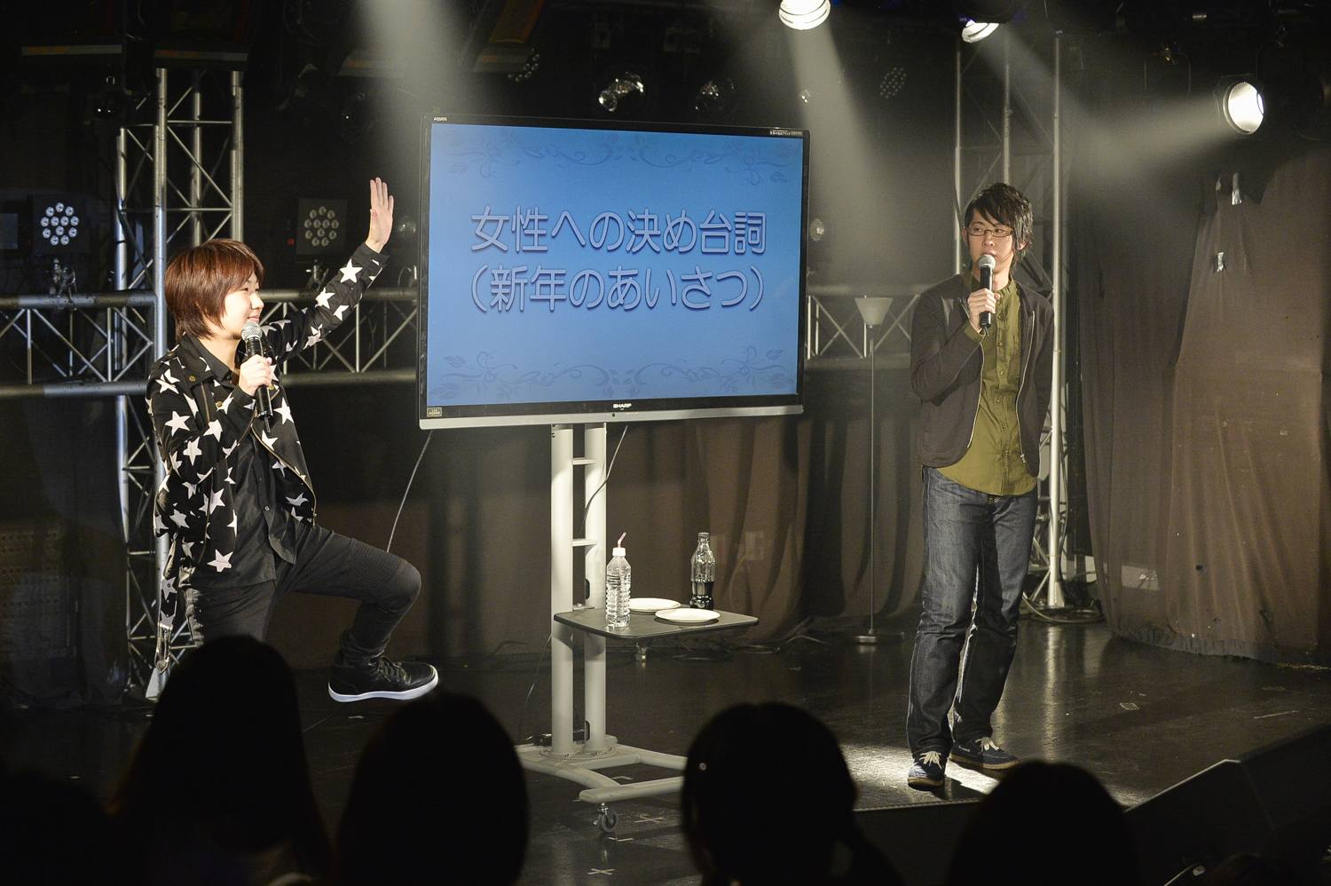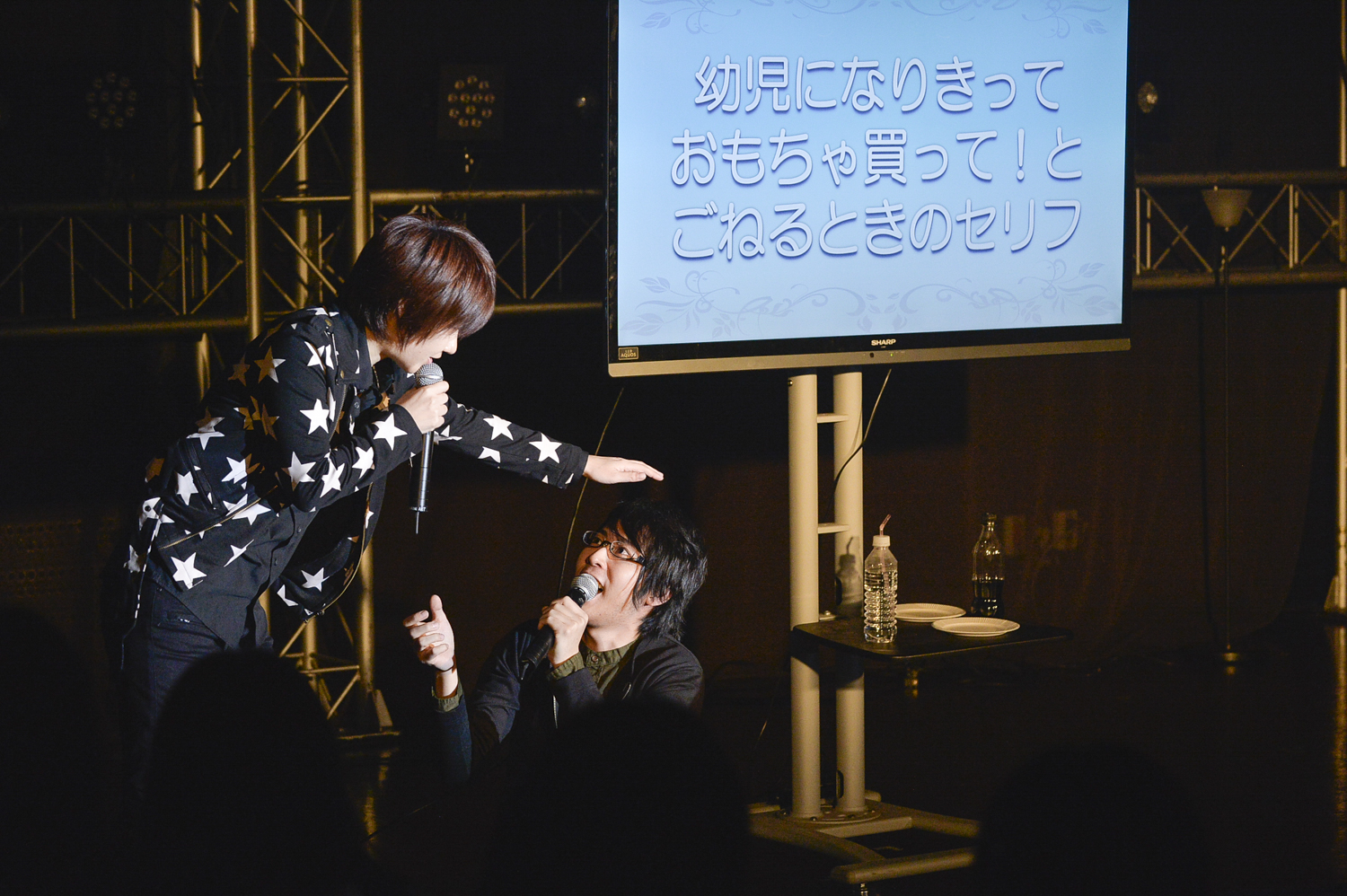 そして再びゲストの白井が登場すると、対決ゲームコーナーへ。「女性への決めゼリフ(新年のあいさつ)」「ものまね対決」、「うんちく対決」といったお題にて対決を繰り広げ、惜しくも敗者となった白井は「幼児のキャラでおもちゃをねだる」といった罰ゲームを遂行。幼児になりきった白井と山本の掛け合いに、会場は大きな笑いに包まれた。