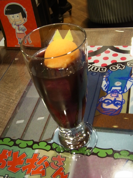 『おそ松の赤しそレモンドリンク』は、赤しそドリンク+レモンシロップ+レモンの一品。少し強めのしそ風味にレモンのすっぱさがマッチしています。サッパリハッキリとした味の感じは、まさにひょうひょうとしたおそ松っぽい!