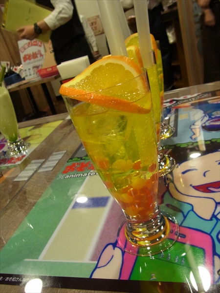 『十四松のハッスルハッスルドリンク』は、エナジードリンク+ポッパーズマンゴー+ポッパーズストロベリー+オレンジ、という一品。見た目もかわいい大き目のゼリー状のボールは、口に含むと弾けます! 飲んだら即ハッスルハッスル、エンジン全開になること間違いなし!!!!!