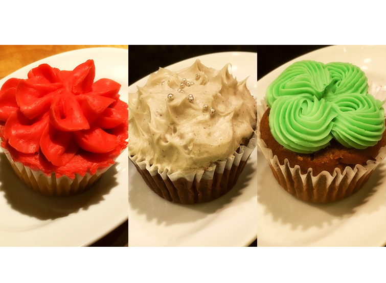 ビショップのカップケーキ(中央):チョコベースにごま風味のシルバーのクリーム。
