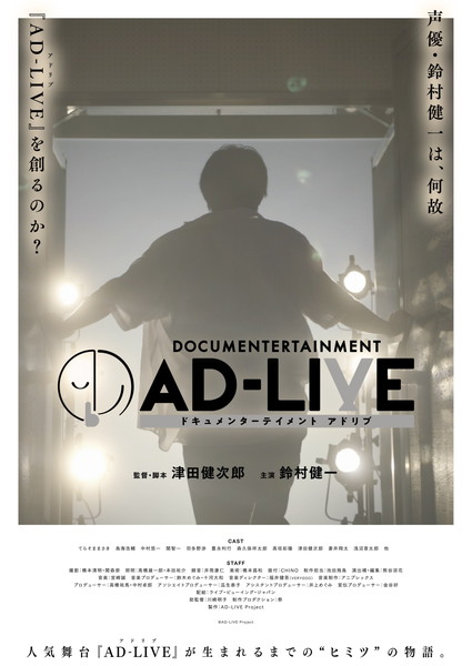 映画『ドキュメンターテイメント AD-LIVE』は、2017年9月から10月に開催され7万人(ライブ・ビューイング含む)を動員した『AD-LIVE 2017』の舞台裏でAD-LIVE出演者でもある声優・津田健次郎がカメラを廻し、AD-LIVEの創り方の“ヒミツ”を描き出した映画。