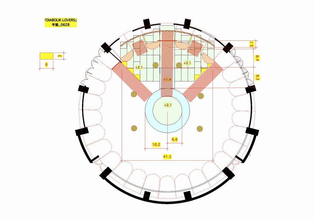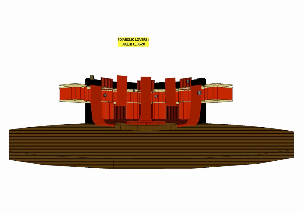 正面図をみると舞台セットも赤を基調としたものとなっているようだ。
