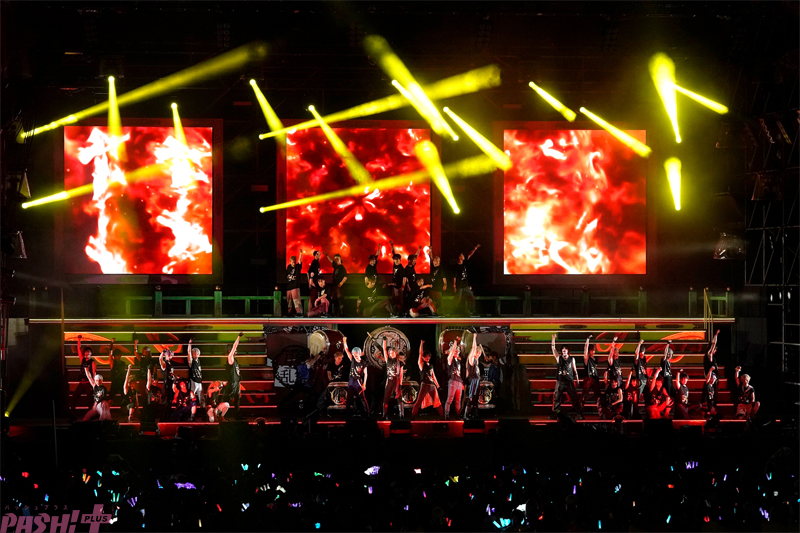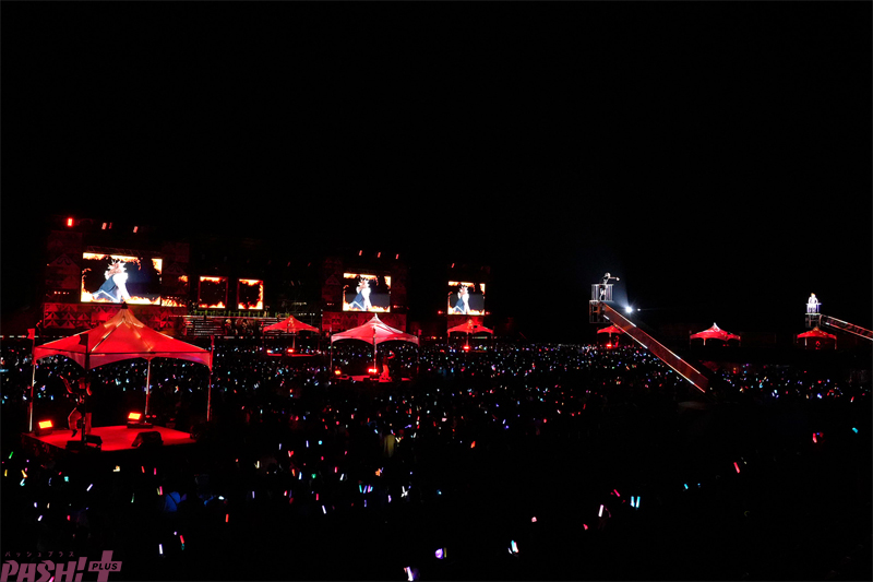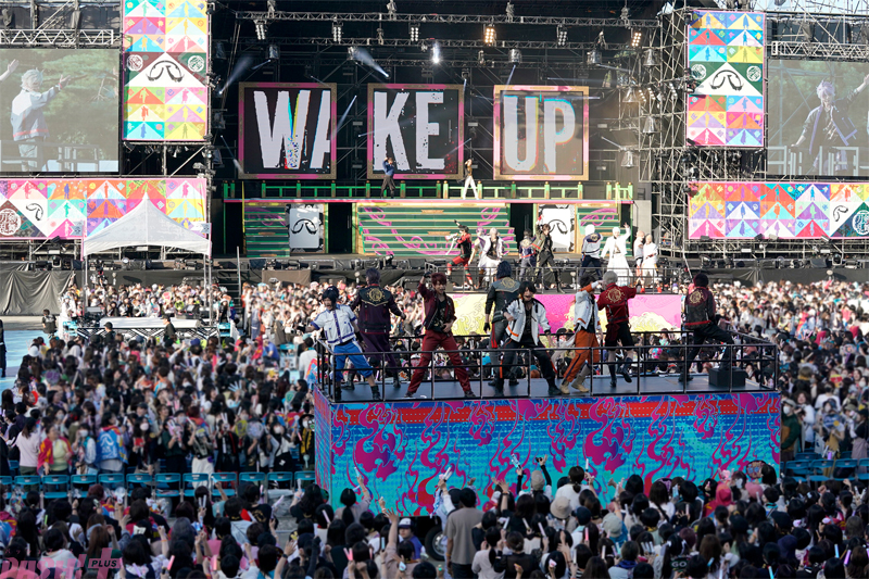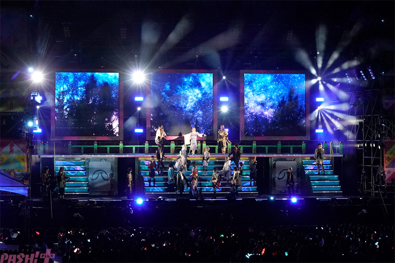 広い会場内を刀剣男士たちが駆け巡り、ミニステージやフロートなども使用して客席の四方八方で歌い踊ります。また、毎日16:30に開演する今回の公演では、空の色が刻々と移ろい、夜の帳がおりる時間に合わせた演出もあり、これまでにない刀ミュの”祭”を楽しめる要素が散りばめられています。