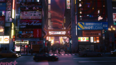 解禁となったメイキング映像では、『龍が如く』シリーズを象徴する舞台であり、金と欲望が渦巻く神室町が本作でどのように表現されたのかを描いています。神室町は桐生一馬にとっての深い意味を持つ街であり、人々の夢と欲望を丸ごと飲み込んだ混沌とした世界。複数の極道がシノギを削っています。ドラマにも登場する神室町をリアルに再現するため、関東郊外に巨大セットが組まれました。