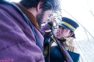 中でも、巧みなCGとの掛け合わせで圧倒的なリアリティーを実現した、前半の杉元と鹿、後半の二瓶とエゾオオカミの対峙シーンは要注目。また、俳優陣も相当な気合が要るほど撮り直しを繰り返し、真に疲れ果てた姿を捉えたという203高地での戦闘シーンも必見。鶴見を中心にした、一枚絵としても魅力的な一コマも登場するのでお見逃しなく!