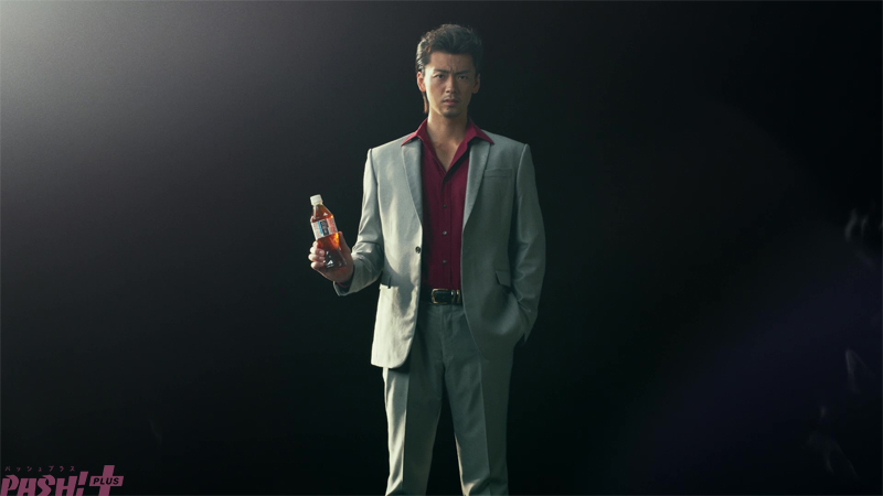 WEB CMの最後は、竹内さんによる「龍が如く、烏龍茶ごくごく」の決め台詞とともに、桐生一馬の迫力ある姿から『サントリー烏龍茶』へとビジュアルが変化し、締めくくられます。