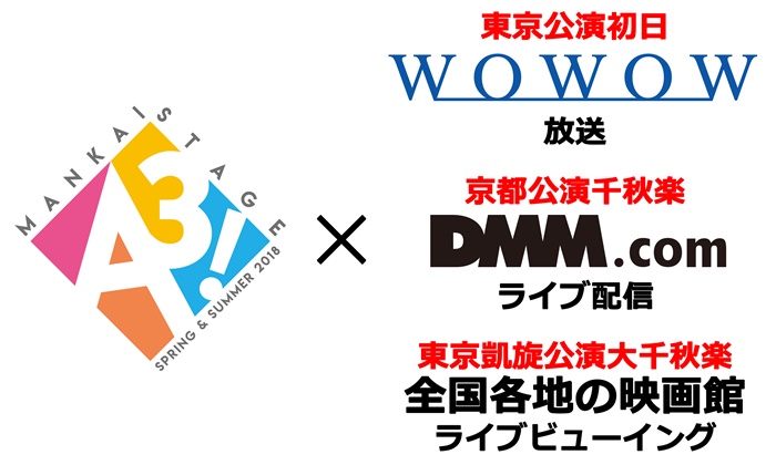 6月より上演される舞台“MANKAI STAGE『A3!』~SPRING & SUMMER 2018~”より、ライブビューイングとライブ配信実施が発表された。